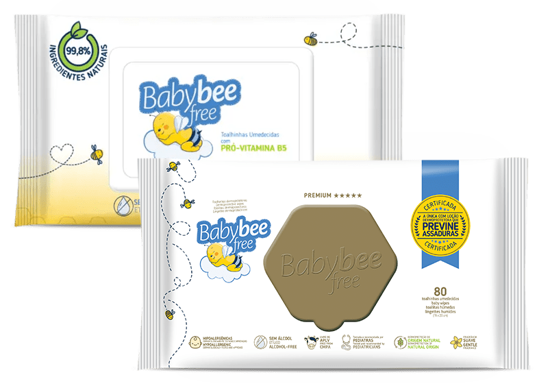Baby Bee Free a única fralda certificada que PREVINE ASSADURAS! Perfeita para as mamães e bebês deste novo mundo! #Dermoproteção de origem natural;