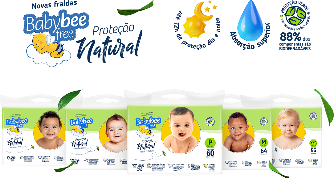 Comprometidos com a sustentabilidade, as fraldas Proteção Natural da Baby Bee Free foram desenvolvidas