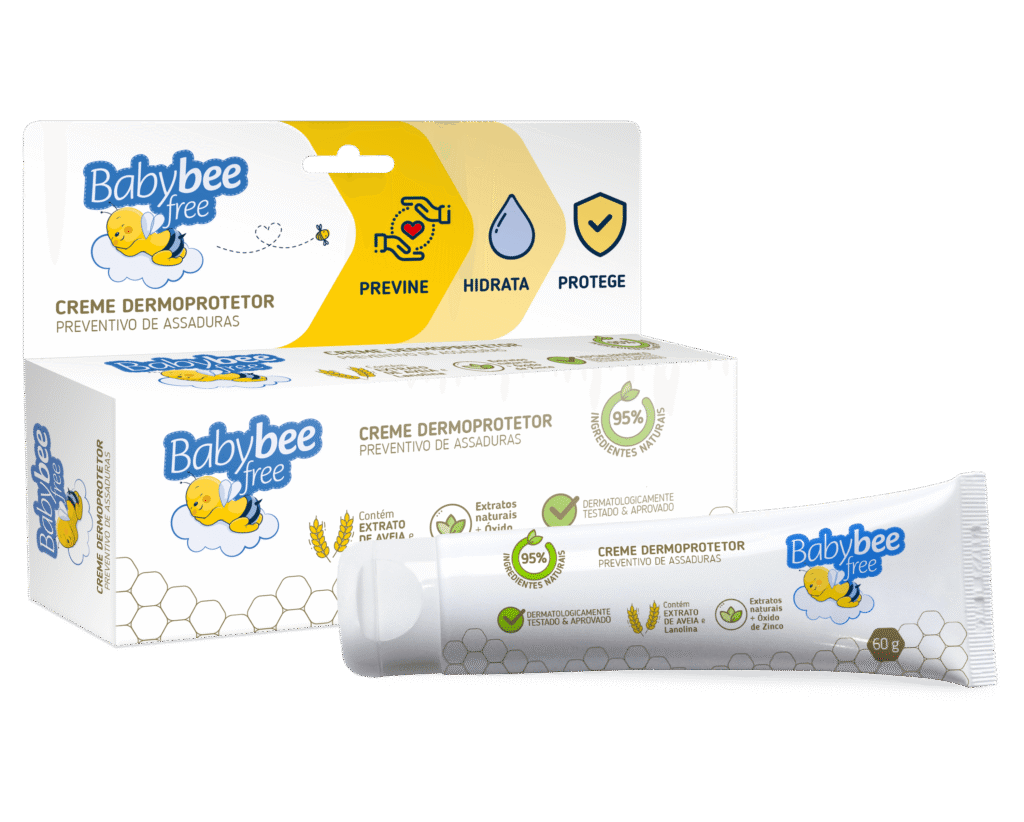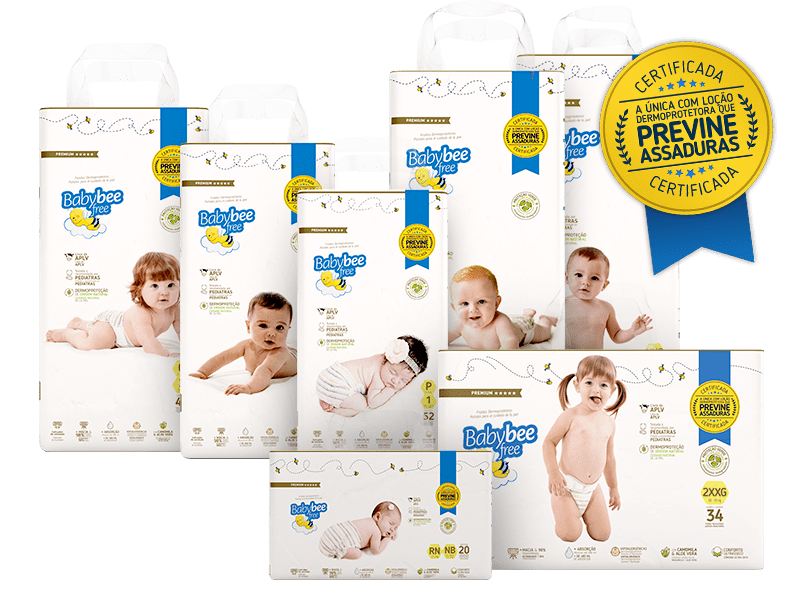 Baby Bee Free a única fralda certificada que PREVINE ASSADURAS! Perfeita para as mamães e bebês deste novo mundo! #Dermoproteção de origem natural;