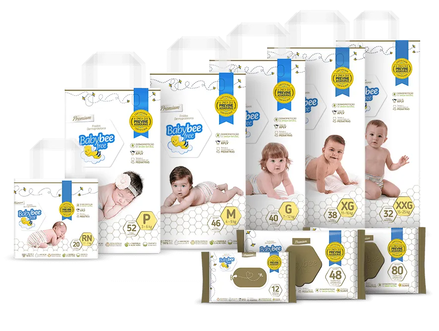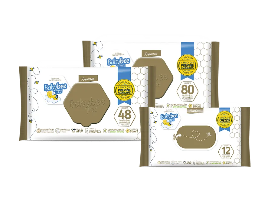 As toalhinhas Umedecidas Premium Baby Bee Free possuem a mesma tecnologia das fraldas, a diferença é que a função Dermoprotetora já está ativada. Essa tecnologia cuida da saúde epidérmica do bebê e foi submetida a rigorosos testes laboratoriais.